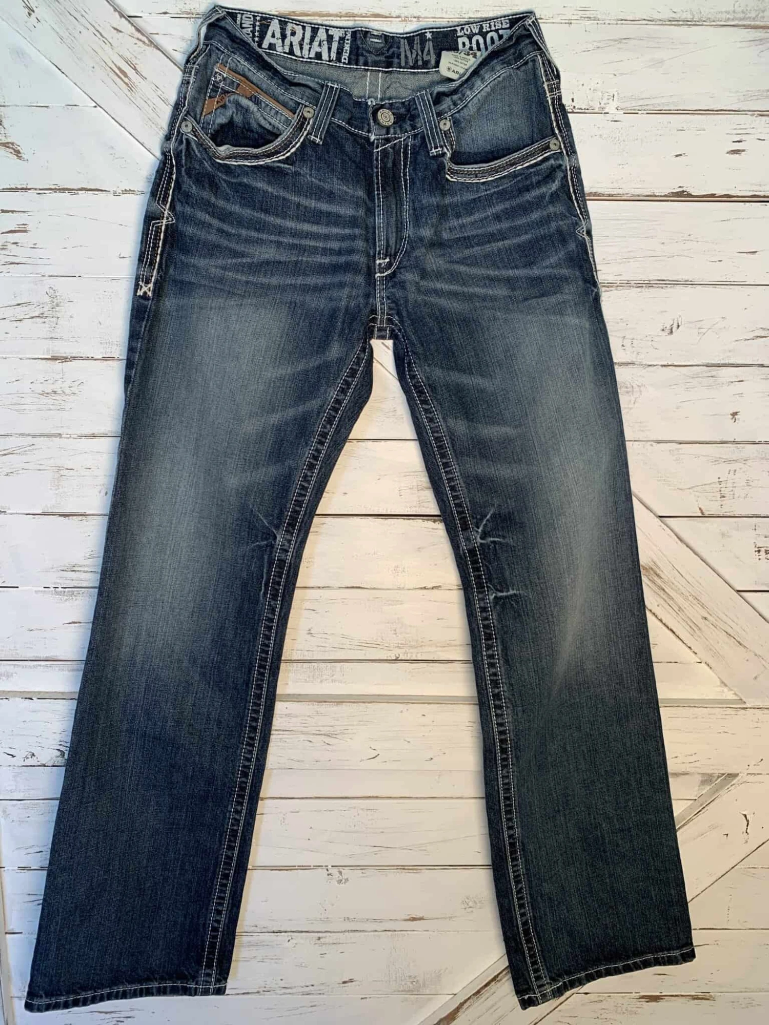 - Light wash with hand sanding and whiskers