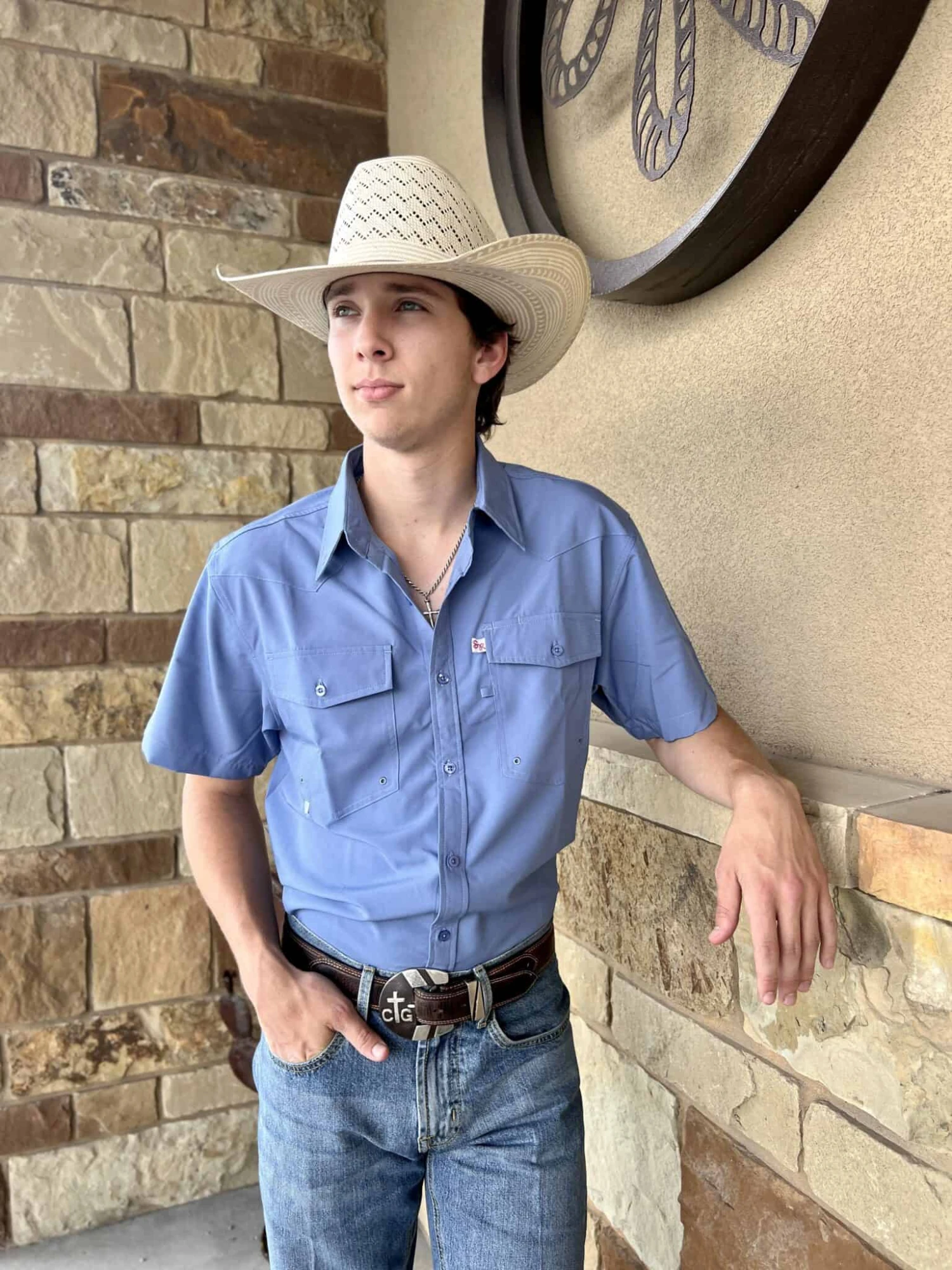 Saddle Rags Performance Short Sleeve – Dusty Blue Waffle